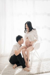The best time to take your photos is in your third trimester, between 30 and 33 weeks. At this point, your bump will be showing well and look great in photos, and you will still be able to move around and pose comfortably. While you can do your maternity session later in your pregnancy, there’s a good chance you will have more trouble posing and standing for long periods of time.